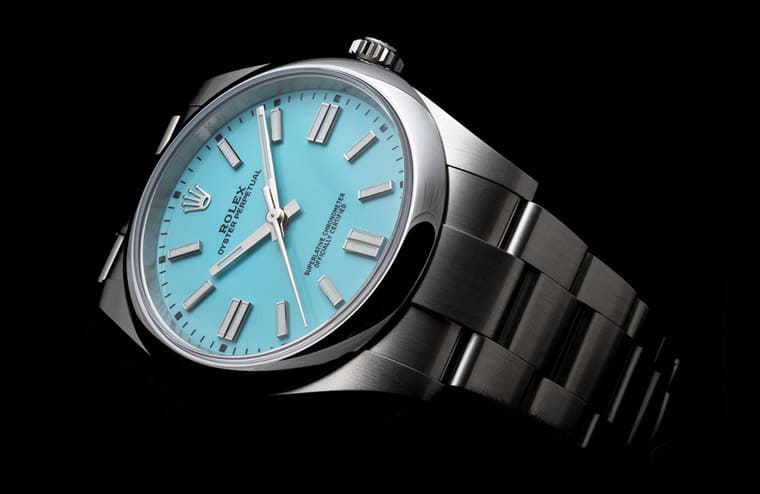 ROLEX這幾年在市場刮起一陣旋風的彩色漆面Oyster Perpetual自推出後一炮而紅,讓大家對這款原本稍感平實的勞力士入門款好感度暴增,尤其Turquoise綠松石色面盤(又稱TIFFANY藍)更是彩色漆面OP之中的當紅炸子雞,由於這種顏色本身的魅力,直接造就手錶在市場上的搶手程度,市場行情曾在2022年初時攀升到90多萬台幣的水準。