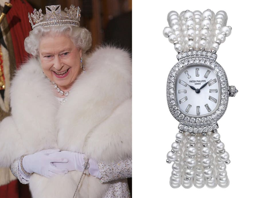 英國女王絕對是王室成員中擁有最多錶且手錶也最名貴的指標人物,女王向來對百達翡麗的手錶情有獨鍾,過去常看到她佩戴該品牌的手錶出席公開活動,甚至這些錶貴重到PP還曾向女王借錶展出,如2015年的百達翡麗鐘錶藝術大展就有女王的手錶參與展出。在女王的收藏中還有一款積家的Calibre 101手錶深得她喜愛,這款錶擁有錶壇最小型的機芯,可能是因為小巧的外型非常得女王的眼緣,所以她常在一些重要典禮上佩戴這款積家袖珍珠寶傑作。女王的錶多到她偶爾會把自己收藏的心頭好作為禮物送給她重視的人,像是當查爾斯王子與戴安娜王妃結婚時,他們便從女王那收到了江詩丹頓手錶這份大禮。以下列出女王歷年佩戴機率最高的幾款錶: