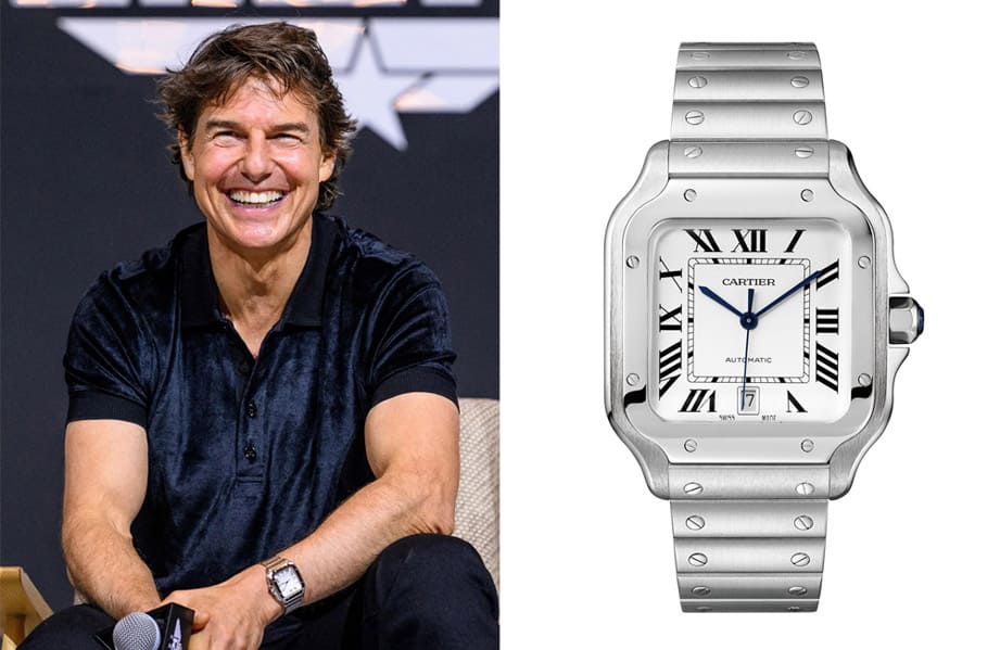 《捍衛戰士:獨行俠》上映後,阿湯哥長途跋涉來到亞洲與影迷見面,當他停留在韓國進行宣傳時,這次他又再度搬出卡地亞手錶,只不過已經改成別的系列,換上近年很紅的Santos飛行錶,這款與阿湯哥先前戴的Overseas或Calibre de Cartier有個最大不同在於錶殼跳脫圓形框架,採用很有辨識度的矩形外觀,而阿湯哥也維持他挑選Calibre de Cartier的喜好,選擇白色面盤的Santos,看起來同樣簡潔優雅,而且這系列還有個特色在於啟用QuickSwitch錶帶快拆系統與SmartLink易調錬節系統,讓人在想換錶帶或調整連帶長度時,可以自己輕鬆操作快速處理。