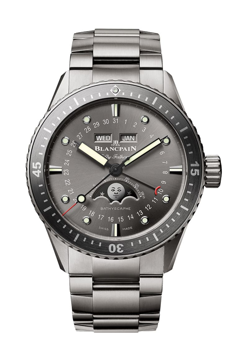 ▲繼不鏽鋼材質後,寶珀2022年新推出採用鈦金屬或玫瑰金材質的五十噚Bathyscaphe全日曆月相錶。
