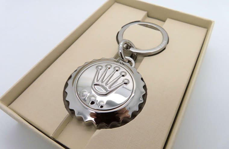 除了手錶以外,你可能多少看過上面印有勞力士皇冠標誌的高爾夫球、鑰匙圈、皮夾或是書寫工具等等,但想在錶店找到這些產品都不可能如願,因為它們只是品牌嚴格控管數量的贈品而已,品牌偶爾會製作一些小禮送給客戶、經銷店家等,但就是不會把它們量產上市,真正想要大概也只有到網路拍賣平台去找看看有沒有人拿出來套現,說實在的如果勞力士想再增加一些年度銷售額,直接出一些市售的週邊產品可能會是滿有幫助的方法。