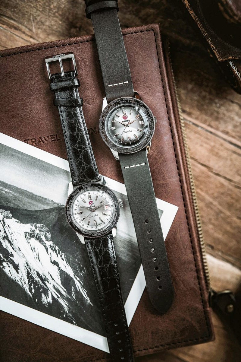 ▲庫克船長Over-Pole世界時區手錶限量版靈感來自雷達表於1962年創作的古董作品(左),將當時剛興起的跨國旅遊冒險精神濃縮其中。
