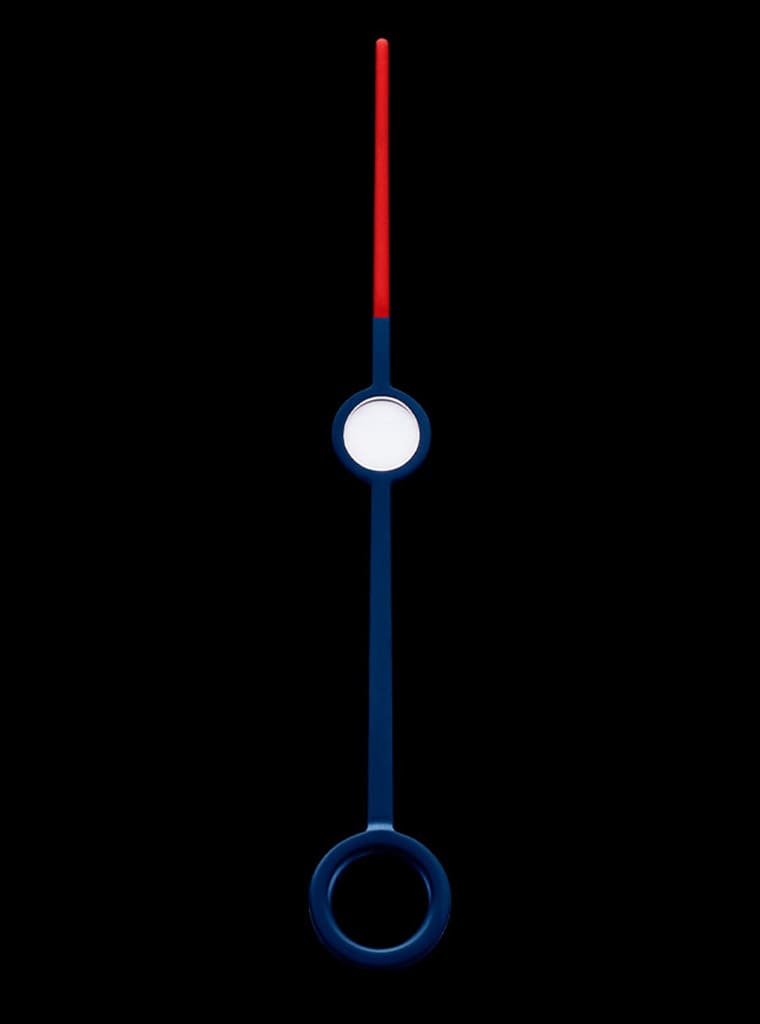 錶款採用單指針設計,Artisans de Genève替其重新打造了一枚風格較為古典的指針,並將指針進行燒藍處理、手工修飾,指針的前端刻意塗上紅色,讓整枚指針呈現出Gianluigi Buffon最愛的兩種顏色,看起來特別又醒目。