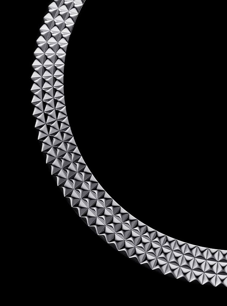 第一眼看到錶圈會讓人想起百達翡麗這兩年來復興的巴黎釘紋錶圈設計(如6119、5057G等作品),改裝錶品牌在不鏽鋼錶圈的表面用手工加上巴黎釘紋,細緻、規律並紮實的風格除了強化手錶的獨特性,也帶有向Gianluigi Buffon球場上豐功偉績致敬的用意。