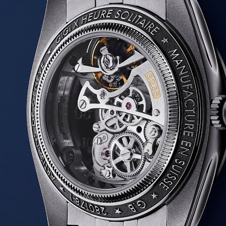 ▲錶背應用透明底蓋露出改良版的3235機芯,改裝錶品牌幾乎重新製作並組裝機芯,使其於顯時功能與外觀造型都有明顯變化。Source:Artisans de Genève
