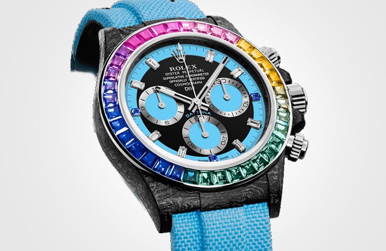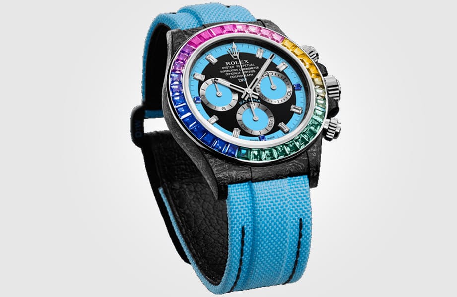 ▲DiW新作將Daytona改成碳纖維錶殼,再加上彩色寶石錶圈,極盡搶眼之能事。Source:Designa Individual