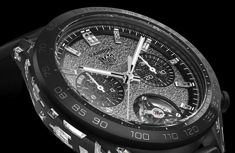 TAG HEUER泰格豪雅新作Carrera Plasma鑽石陀飛輪展現品牌打造高級奢華手錶的新創意與技術,替品牌未來製錶帶來啟發意義。泰格豪雅希望透過這款錶嶄新詮釋鑽石手錶的定義,並罕見將鋁、陶瓷與碳材質與鑽石結合在一起,激盪出獨特的光線反射效果,加上陀飛輪裝置的吸睛作用,手錶真的是極盡搶眼之能事。