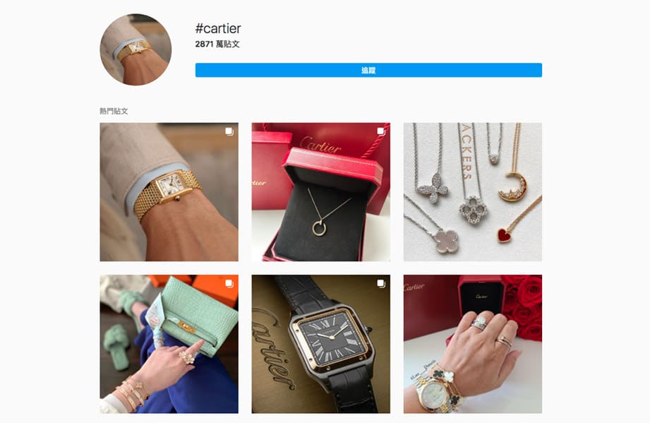 ▲社群平台搜尋卡地亞的關鍵字反而比勞力士更多。Source:Instagram