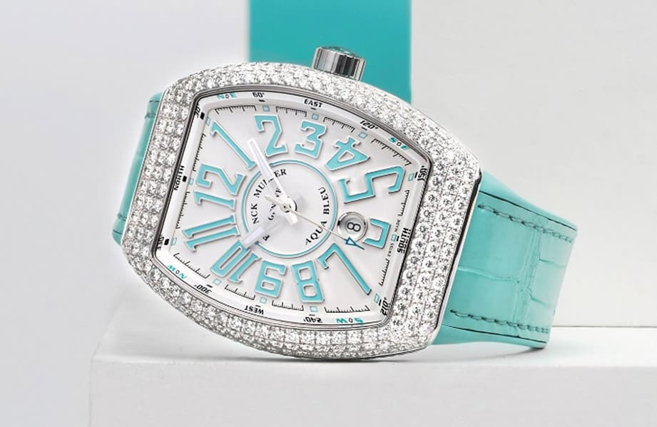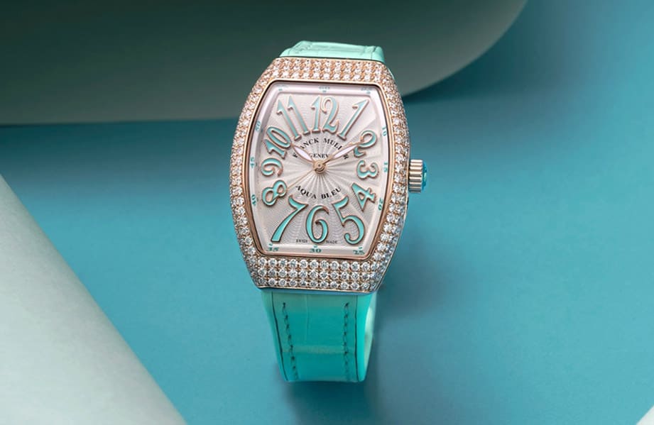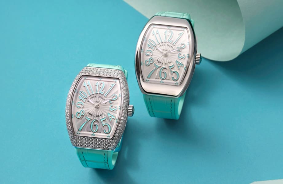 ▲FRANCK MULLER以「水」為主題,於手錶細節融入水藍色調,作為獻給大中華地區收藏家的驚喜。