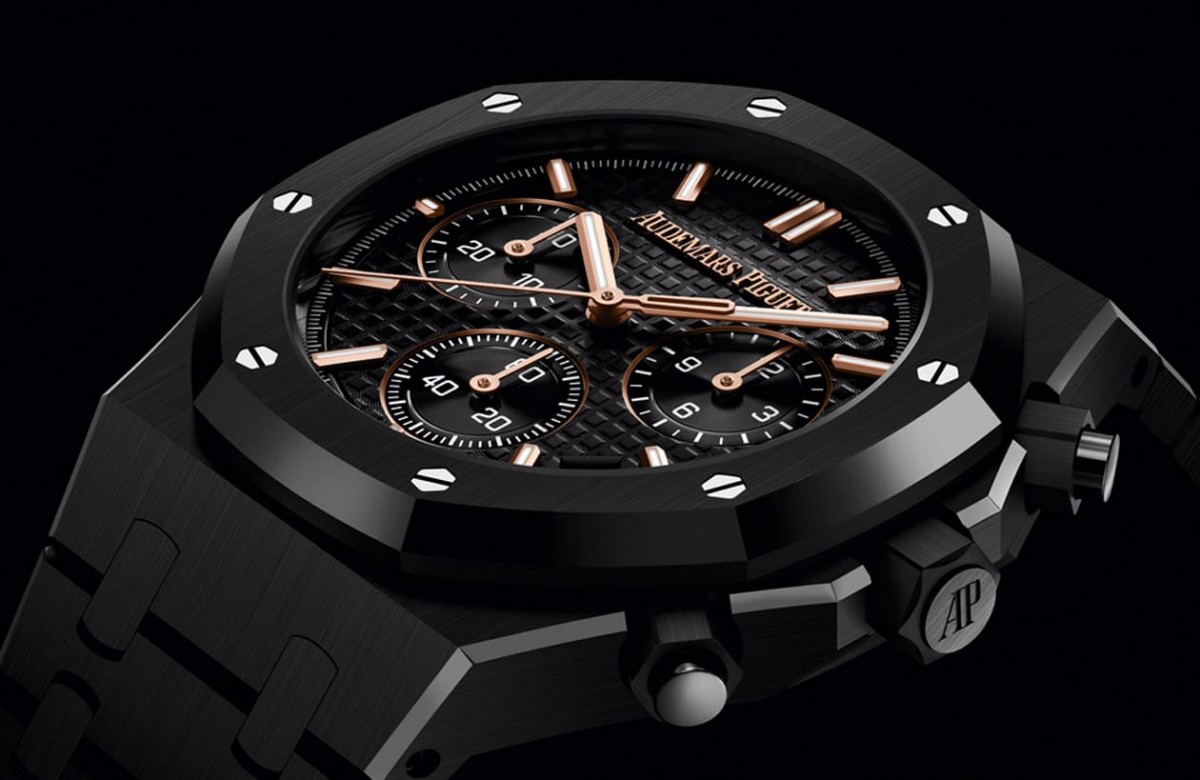 ▲先前經由Kevin Hart搶先曝光的黑陶瓷皇家橡樹計時碼錶如今正式發表,全陶瓷殼的質感令人一見傾心。