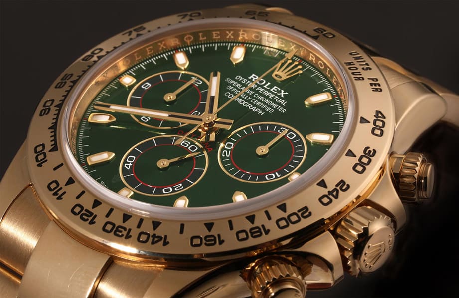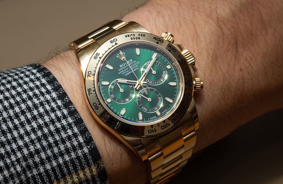 國外店家向英國媒體WatchPro爆料點出現在是個入手勞力士K金Daytona、尤其是綠金迪的絕佳時機!此話怎麼說?根據WatchPro報導,因為近期綠金迪在國外的二級市場價格狂跌許多——別誤會,跌價歸跌價,但怎麼樣都不可能跌到定價水平,只是和之前這款錶漲到天花板的天價相比,現在的行情真的已經降到足以讓人眼睛一亮、買錶慾大爆發的階段。
