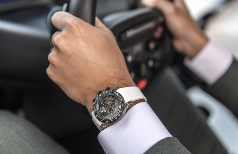 法國改裝錶品牌SKELETON CONCEPT和美式肌肉車改裝大廠Hennessey Performance Engineering (簡稱HPE)最近合作打造一款Venom F5 Concept手錶,用來呼應HPE的得意傑作——Hennessey Venom F5極速超跑。Venom F5採用HPE首款自製引擎,擁有1817匹超狂馬力,理論上極速可達311英里(超過500公里),挑戰最速市售車的企圖心不言而喻。