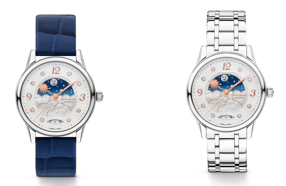 不鏽鋼材質/MB 24.20自動上鍊機芯/時、分、秒、日期顯示/晝夜顯示/珍珠母貝面盤/藍寶石水晶鏡面/防水30米/錶徑34mm/參考價:NT$ 120,700(皮帶)、NT$ 131,100(鍊帶)