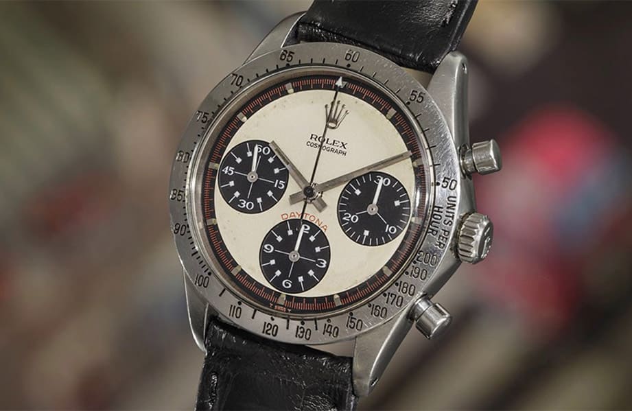 由知名好萊塢影星Paul Newman擁有的勞力士Daytona,手錶為Paul Newman第二任妻子Joanne Woodward所送給他的禮物,底蓋刻有”DRIVE CAREFULLY ME”字樣,是Joanne Woodward特別叮嚀老公的愛的小語。手錶本身由於年代久遠自然珍貴,但最重要的意義在於它是Paul Newman曾長期佩戴的私人物件,等於是「Paul Newman中的Paul Newman手錶」,它在2017年10月於富藝斯紐約的Winning Icons拍賣會售出,一舉超過PP不鏽鋼Ref. 1518躍居當時的錶壇身價王。