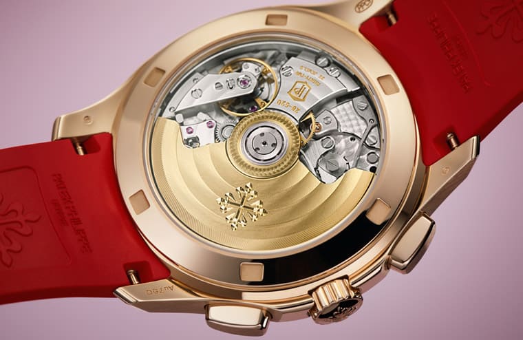 錶款的計時功能由6點方向的60分計分盤作為辨識依據,搭配中央計時大秒針簡約但明瞭地指示計時成果。錶背透明底蓋露出CH 28-520自動機芯,這枚機芯採用垂直離合機制,能有效降低計時功能剛啟動時計時大秒針顫動的情況,間接提升手錶的計時精準度,還可以降低零件磨損程度、延長機芯的使用壽命。機芯本身的品質不用多說,在視覺可及之處,就算單純看著機芯零件外觀的作工,欣賞其打磨拋光也夠賞心悅目了,包括修飾細緻度、機芯品質等都經過PP印記把關認證,佩戴者可以戴得高枕無憂。