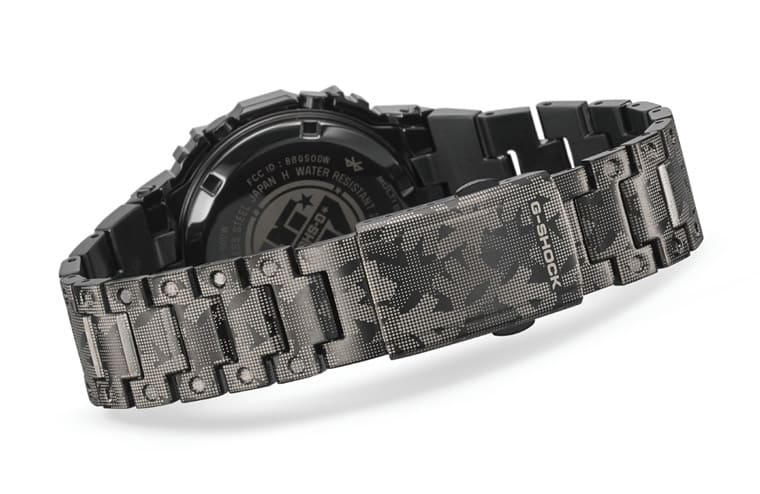 Eric Haze與G-SHOCK合作已經不是什麼新聞,畢竟雙方合作歷史超過20年,過去Eric Haze也替品牌創作過不少暢銷款式,因此當G-SHOCK邁入40週年,再度找上老搭檔Eric Haze合作也是剛好而已。這次Eric Haze替G-SHOCK設計的聯名款以全金屬的GMW-B5000為基礎,塑造出蘊含塗鴉風格的作品GMW-B5000EH-1。錶款採用不鏽鋼材質,表面經過黑色IP處理,鍊帶部分更以雷射雕刻手法添加各種大小的灰色圓點,同時在一些細節中也還是可見藝術家的專屬風格,像是開啟LED背光燈時會出現Eric Haze的品牌圖樣,讓佩戴者讀時之際也有驚喜可挖掘。