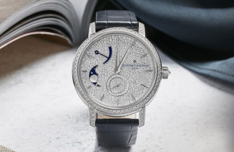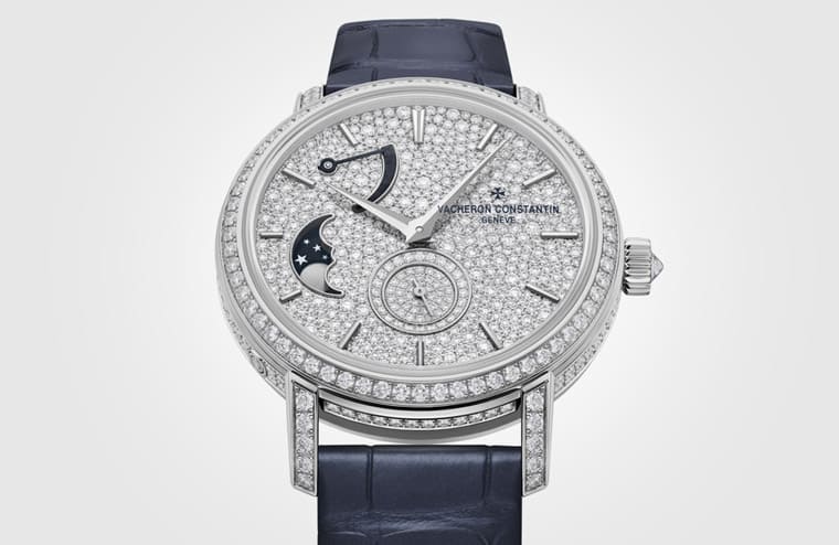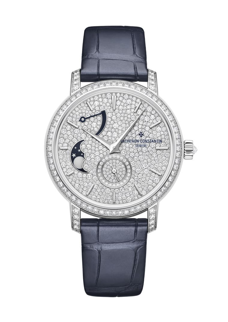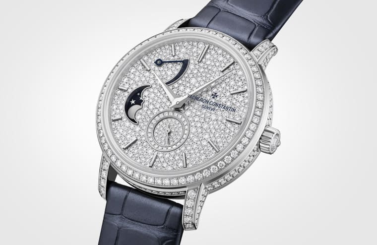 VACHERON CONSTANTIN江詩丹頓推出新作Traditionnelle月相錶,錶款除了具有詩情畫意的月相顯示,更採用白金錶殼與美鑽等元素,展現出奢華迷人的高工藝水準。