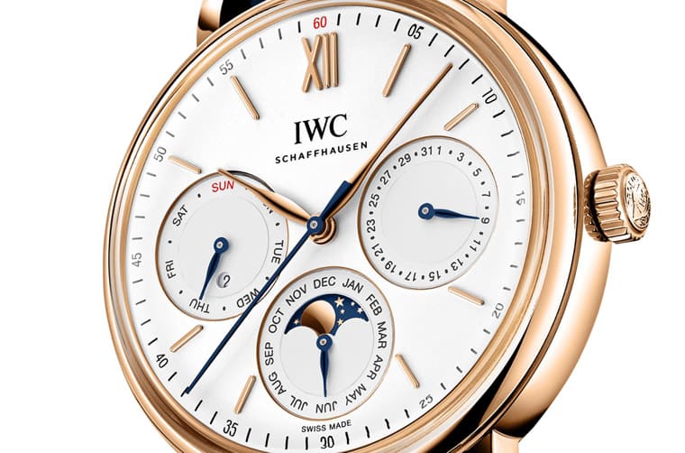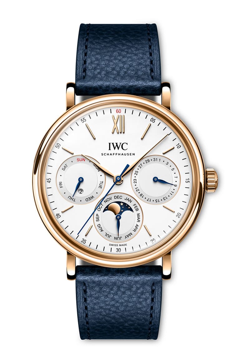 過去IWC的確也曾出過擁有萬年曆功能的柏濤菲諾手錶,不過已經有陣子沒再出現新品,直到2022年品牌才終於再度將這項功能帶回柏濤菲諾系列。此次新款柏濤菲諾萬年曆除了不鏽鋼版本,尚有一款18K玫瑰金版本,前者配置鍍銀面盤、鍍銠指針和線型時標、後者則為鍍銀面盤、鍍金指針和線型時標。錶款的尺寸為40mm,對於較偏好適中錶徑的收藏家而言,這款目前IWC旗下錶徑最小的萬年曆手錶會是一個很值得考慮的新興選項。
