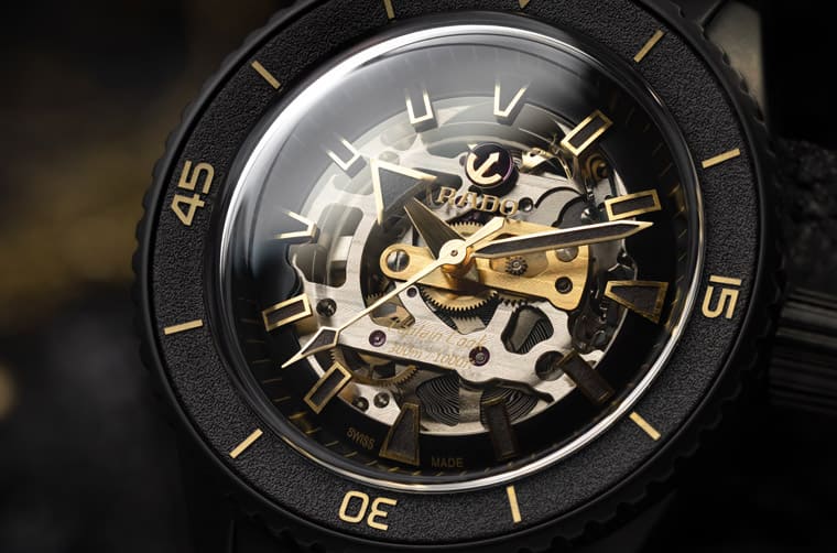 除了全新店面之外,雷達表也因應店面重新開幕精心製作一款Captain Cook庫克船長300米高科技陶瓷鏤空限量錶。其以黑色陶瓷材質打造手錶外觀,陶瓷旋轉錶圈上採用黑色雷射蝕刻的陶瓷襯片,面盤則有Super-LumiNova®夜光塗層呈現出具有時尚浮雕風格,加上大尺寸指針,讓人可以一目了然當前時刻。