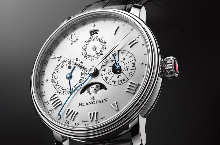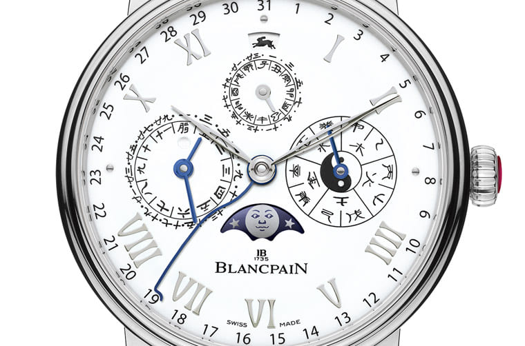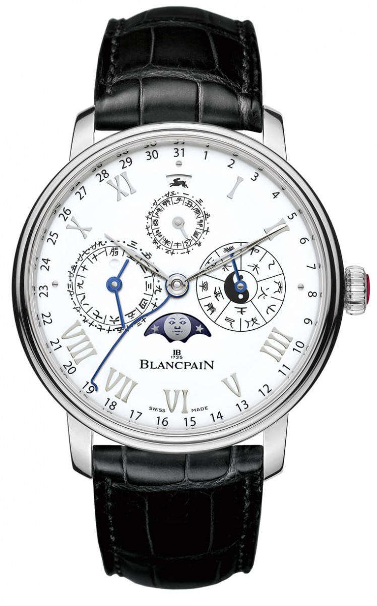 錶壇裡面最具中國風的複雜功能當屬BLANCPAIN寶珀獨家研發的中華年曆功能,品牌於2012年一手打造出Villeret中華年曆錶驚豔許多熱愛中國風的錶迷與收藏家,這款錶罕見結合西方陽曆與東方農曆,除了顯示大家熟悉的年曆功能,還蘊含十二地支、五行、十天干與十二生肖等顯時資訊,原本品牌並沒有刻意突顯手錶與農曆新年的關係,畢竟它的面盤12點方向便設有錶壇唯一的十二生肖顯示,這和一般生肖錶在面盤上僅表現特定年份的生肖主題不同,等於是一只款萬用生肖錶。不過眼見有愈來愈多品牌投入生肖錶戰場,使得寶珀後來也改變主意跟上潮流,近年來品牌也都會固定在農曆年前發表結合生肖主題的Villeret中華年曆錶以響錶迷。