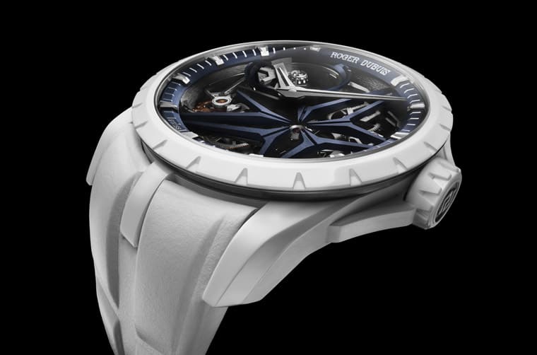▲Excalibur Hypebeast Monobalancier採用白色陶瓷錶殼搭配白色小牛皮錶帶,散發俐落優雅的個性。