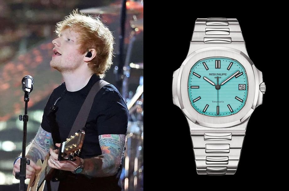 最近我們又發現Ed Sheeran有一款不得了的收藏,那是在2021年底登場後掀起市場巨大熱潮的PP Nautilus 5711/1A-018(TIFFANY聯名款),他在某次現場巡演時手上戴了這只面盤為特殊TIFFANY藍色並印有TIFFANY & Co.標誌的超限量手錶,讓人驚覺紅髮艾德也是5711/1A-018那幸運的170位錶主之一,這款定價52,635美金的手錶目前市值可是約有300萬美金,加上想入手必需和TIFFANY & Co.有良好的關係,是一款就算有錢也不一定買得到的神作,紅髮艾德能擁有這款錶不知令多少手錶收藏家羨慕不已。