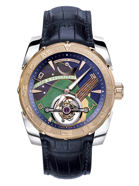 2013年1月,帕瑪強尼曾推出兩款同樣為音樂主題的陀飛輪手錶,他們分別是Tonda Woodrock和Tonda Woodstock,均採用木質鑲嵌細工工藝呈現吉他圖案,分別展現英國國旗和美國星條旗,意在致敬英國和美國搖滾音樂。Pershing Samba Madeira手錶的稱頌對象是巴西,因此吉他的背景圖案也如巴西國旗一般:巴西的國家箴言“秩序與進步”(Ordem e Progresso)橫跨繁星閃爍的星球;巴西國旗上的色彩:綠色、黃色和深藍色遍布整個錶盤壁面與愛馬仕錶帶,散發出專屬巴西的美好熱情。