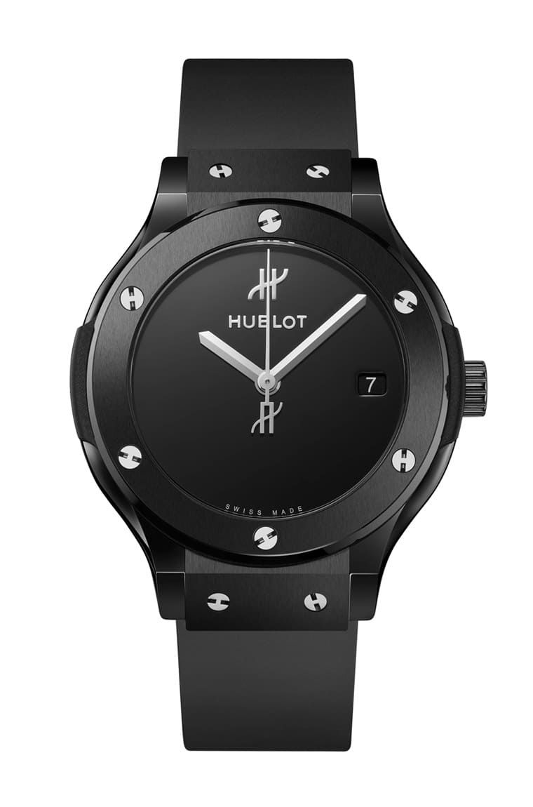 錶款的錶圈上設有6顆代表品牌的H型鈦金屬螺絲(上下切面錶耳則各有兩枚外露H型螺絲),如此能將錶圈牢牢固定於錶殼上,宇舶並用黑漆面盤搭配金屬立體刻面指針,其中秒針的末梢帶有「H」型字樣,與12點方向的品牌標誌彼此呼應,除此之外,手錶完全捨棄了時標或刻度,僅保留3點方向的日期視窗,展現實用簡約的美學。