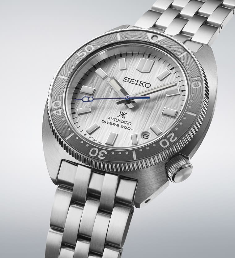 這款Prospex製錶110週年紀念錶是以SEIKO 1968年製作的6105-8000潛水錶為創作藍本,包括鮑魚殼造型以及將錶冠設置於4點方向的設計都是來自當年那款古董錶,新款採用不鏽鋼材質打造,錶圈則以同心圓飾紋強化視覺效果與手錶的整體質感。