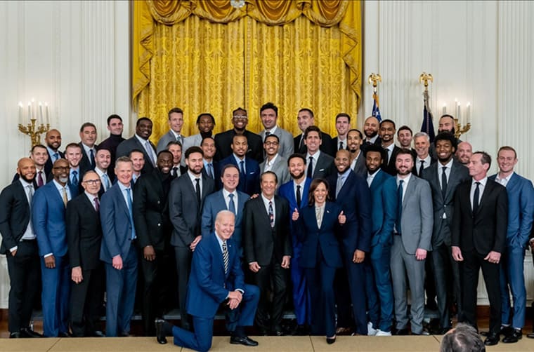 美國職籃NBA 2021-2022球季的總冠軍金州勇士隊稍早前往白宮接受美國正副總統拜登(Joe Biden)與賀錦麗(Kamala Harris)表揚,這也是勇士隊繼2015年後睽違8年再度造訪白宮;別誤會,小編沒有算錯,因為過去8年來,勇士隊雖然4次奪得NBA冠軍,但因為2017~2018那兩個球季奪冠時,美國政府還處在前總統川普(Donald Trump)執政時代,由於當時包括勇士隊在內,有許多NBA球星都公開表示過對這位主政者的不滿,連勇士隊當家一哥「萌神」aka「咖哩大神」柯瑞(Stephen Curry)都主動放棄前往白宮接受川普表揚的機會,因此那2017~2018那兩個勇士隊奪冠的球季,他們後來都沒有受邀前往白宮。