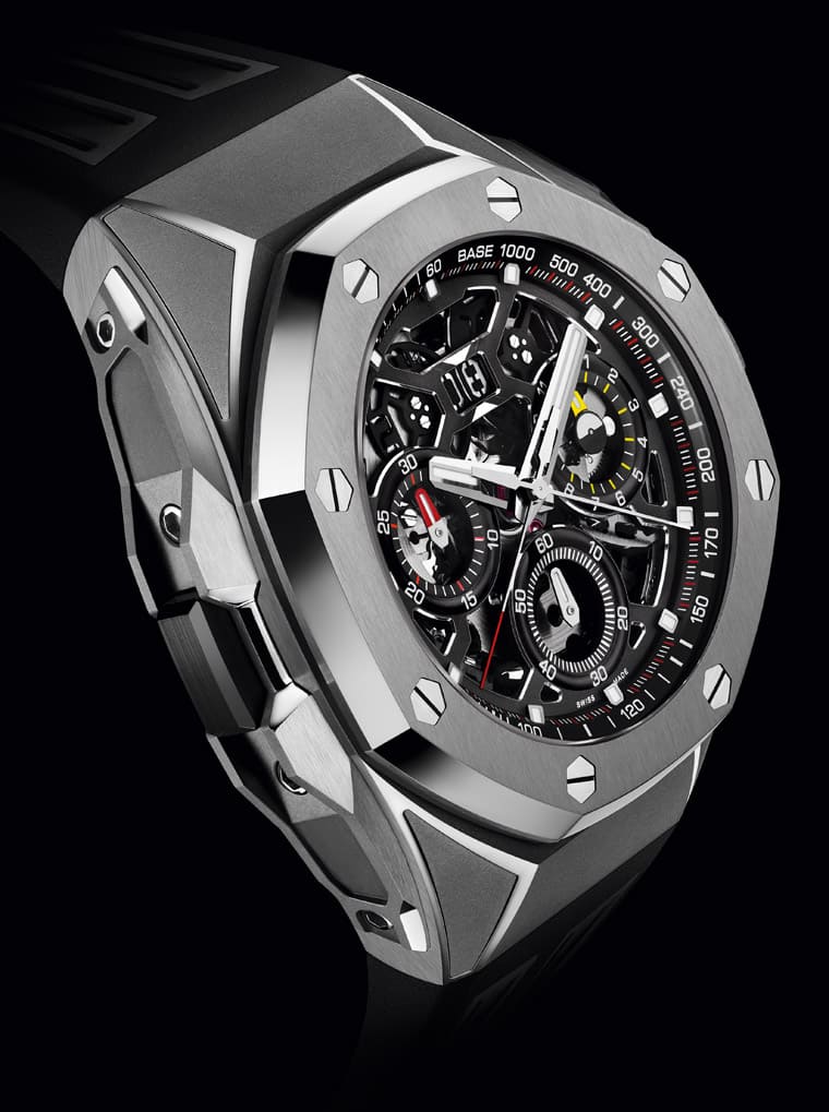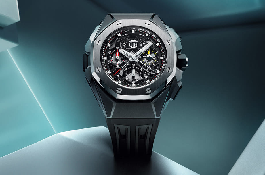 ▲愛彼皇家橡樹概念系列新增一款首度進階至自動雙追針計時功能的高複雜新作。
