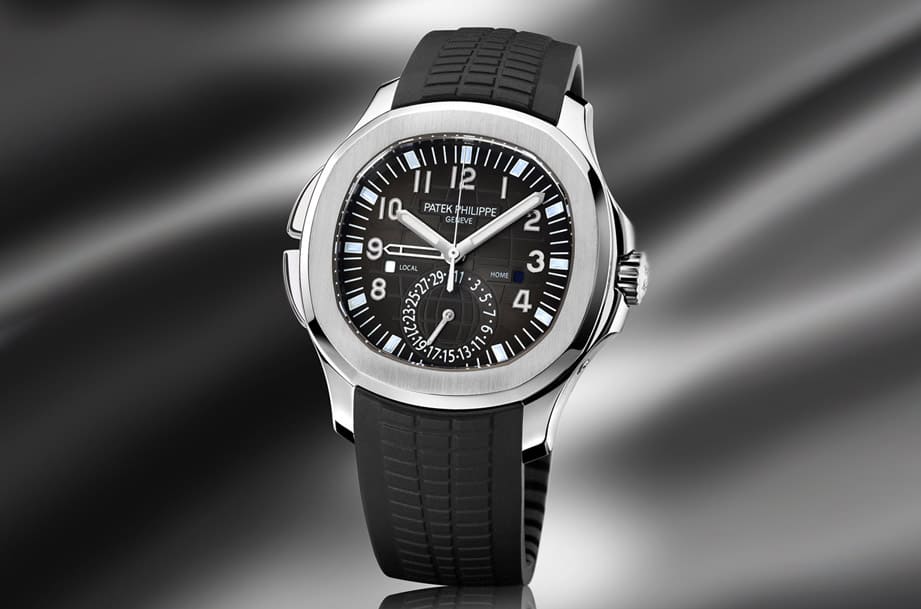 PATEK PHILIPPE百達翡麗Aquanaut系列的人氣款5164A有別於系列基本款如5167或5168等,其具備相對複雜的(重點是實用性頗優的)兩地時間功能,除了手錶面盤以中央第4根指針指示第二地時間,搭配3點和9點方向的兩地日夜顯示簡潔易懂之外,5164A就連設置兩地時間也非常方便,透過PP的專利設計,佩戴者只需要按壓錶殼左側的兩枚按把,就能順時針或逆時針快調所在地時針(就是有填上夜光物料的那枚時針),使用上的便利性也是這款錶倍受層峰市場喜愛的原因。