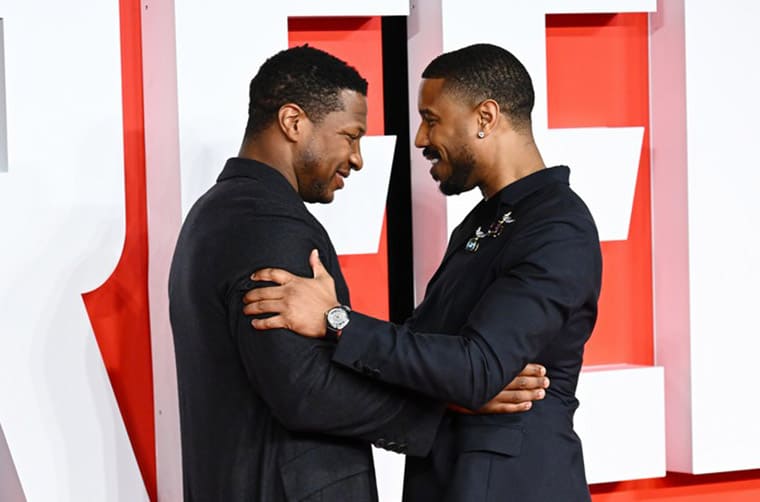 ▲當麥可.B.喬丹(右)與Jonathan Majors在首映會現場打招呼時,前者手上的名錶也明顯露出。Source:Just Jared