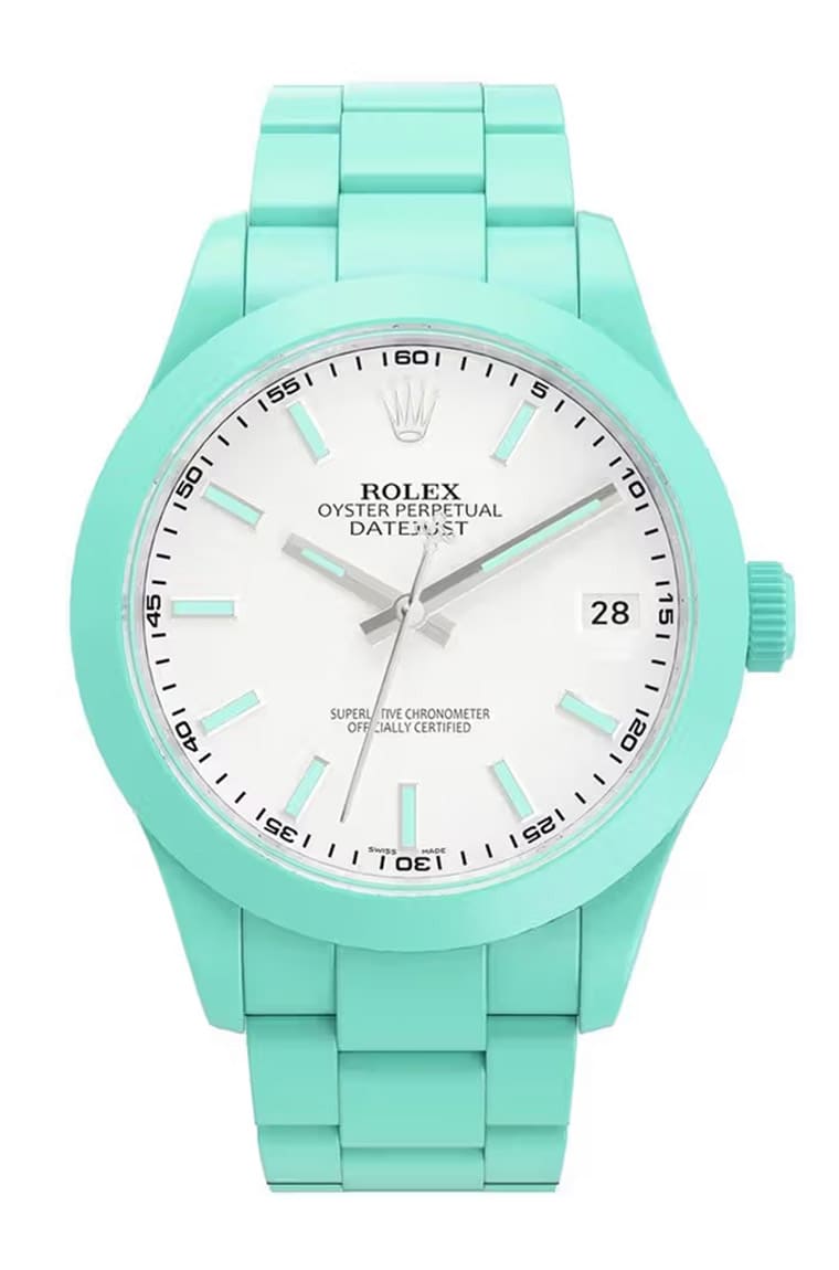 ▲薄荷綠色陶瓷塗層Datejust改錶,參考價為20,735美金。Source:doverstreetmarket