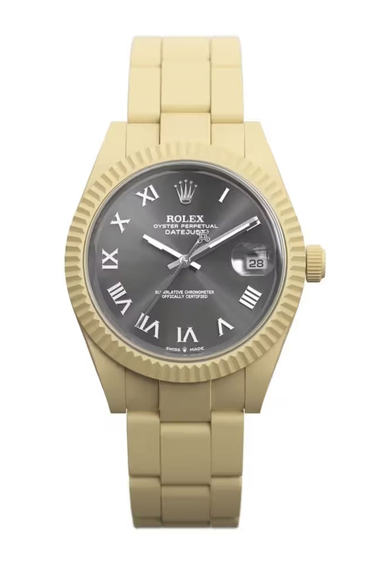 ▲卡其色陶瓷塗層Datejust改錶,參考價為12,715美金。Source:doverstreetmarket