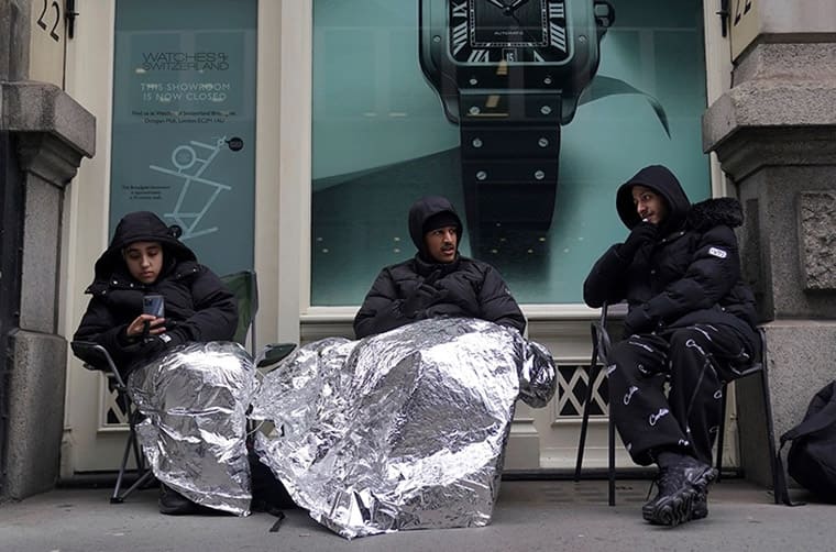 ▲英國首賣新款MoonSwatch時,據說當地氣溫低至華氏37度(約攝氏2度多一點),且現場還下起小雨,突顯排隊買錶的辛苦。Source:Robb Report