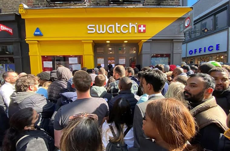 ▲新款MoonSwatch於倫敦首賣時,在英國倫敦皇家交易所再度出現排隊人潮。Source:Robb Report