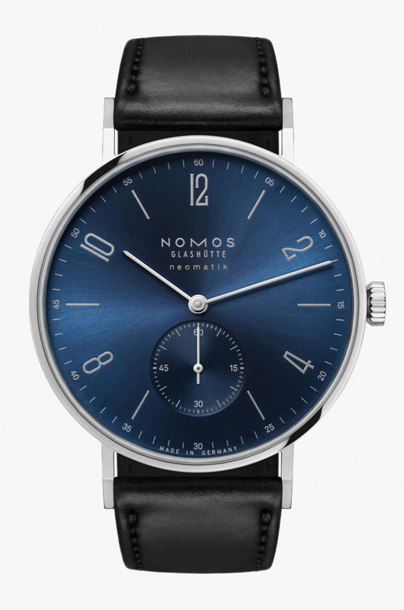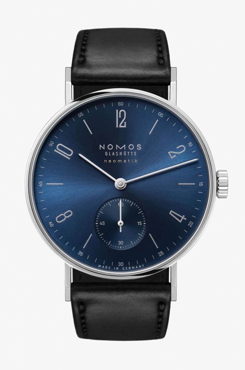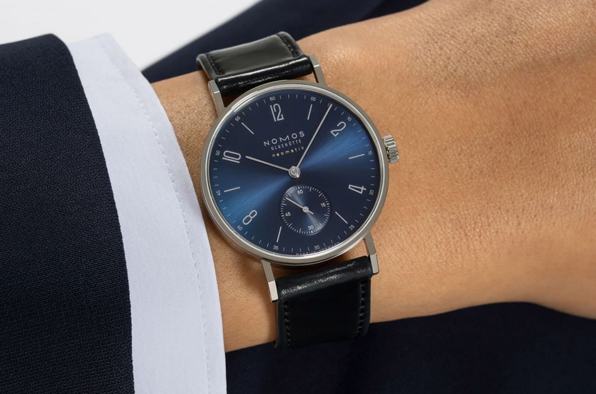 Tangente系列擁有NOMOS製錶所有招牌特色,如包浩斯風格、優雅簡潔設計等,對部分人而言,品牌主力的白色面盤款式可能相對普遍而少了些第一眼吸引力,此次嶄新換上藍色日暉紋面盤的Tangente neomatik Blue Gold剛好能因應追求獨特個性人士的需求,其經過電鍍加上進一步修飾後所形成多變的藍色深淺層次、面盤銀灰色刻度與字樣,加上金色”neomatik”搭配相得益彰,保有俐落感之餘,也散發內斂高雅的自信,無論休閒或正式場合佩戴都很合適,且內部的自製機芯也是久經市場淬煉的口碑之作,內外均衡的表現絕對是體驗德國製錶工藝的絕佳敲門磚。