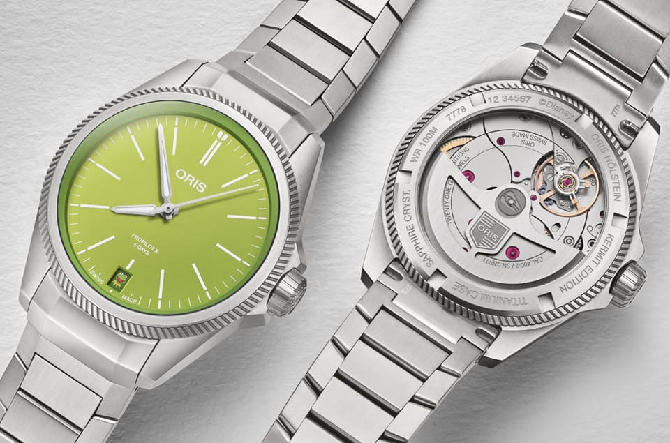 這次ORIS所開發的ProPilot X Kermit聯名錶以ProPilot X Calibre 400為基礎,錶殼與鍊帶都採用鈦合金製成,錶徑39mm大小適中,系列招牌的錢幣紋錶圈也不變,最吸引人的改變莫過於比照科米蛙表皮的綠色面盤,手錶位於6點方向的日期窗有一個ORIS精心準備的彩蛋,每逢每個月的第一天,日期窗並不會出現數字”1”,而是露出掛著招牌笑容的科米蛙圖案,品牌希望手錶帶來的”Kermit Day”能在每個月的開始就讓人有好心情可以應付接下來整個月的挑戰,並不忘帶著幽默感來度過每一天。