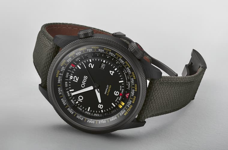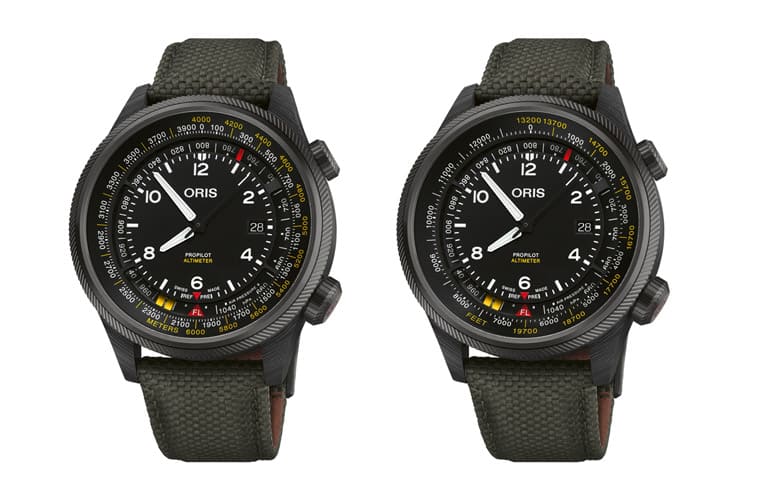 錶款面盤除了基本的三針與日期功能外,藉由錶殼4點方向的副錶冠還能設定測高儀參考數值,進一步顯示佩戴者當前所在高度以及氣壓資訊。針對不同國家以及使用習慣的佩戴者,ORIS分別推出測高儀刻度為英尺和公尺的兩種版本,新款ProPilot Altimeter高度測量錶也突破過往極限,將手錶能測到的高度上限提升至19,700英尺/6,000公尺。此次手錶搭載的793機芯一方面體積更小,同時也將動力儲存提升至56小時,裡裡外外都朝著更好戴也更實戴的目標深度進化。