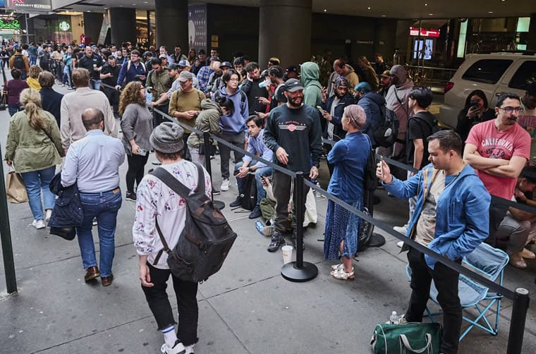 從Mission to Moonshine™ Gold首賣時的現場情報看來,錶迷對於這款高話題作品的渴望並沒有急速退燒,因為當時現場還是出現排隊人潮,那麼這款錶在稍早第二波發售後,全球市場還是願意買單嗎?根據外媒《Hodinkee》守候在紐約時代廣場店的特派員現場直擊,至少美國錶迷們還是超哈Mission to Moonshine™ Gold,因為他們觀察到現場至少聚集約一千人左右的人潮排隊,盛況堪比當年Apple Watch剛發表的時候!