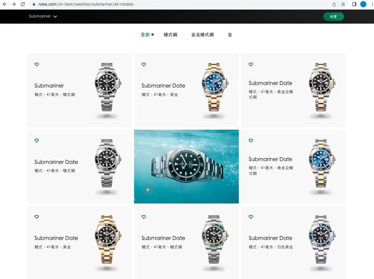 ▲目前勞力士官網列出的Submariner系列成員,看起來與錶展前無異。