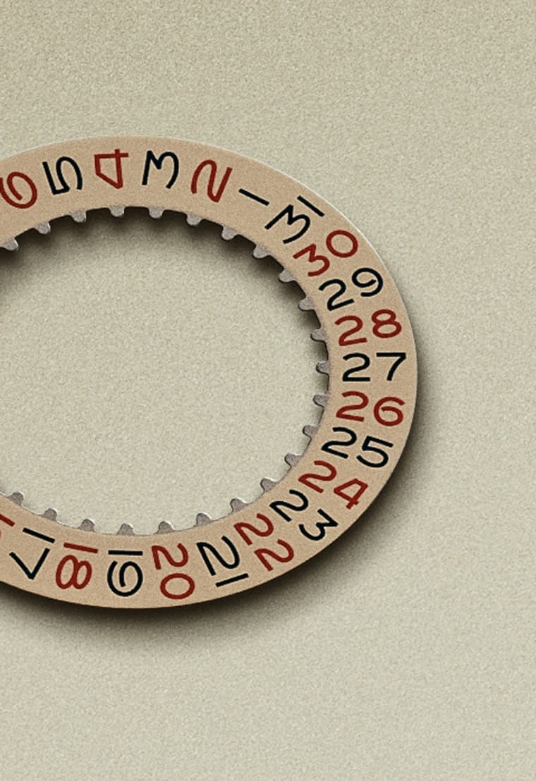 根據自然老化過程開發了兩種色調,形成自然的漸變泛黃質感,其中時標部分拿掉了金屬外框,和刻度同樣改用手繪製作。