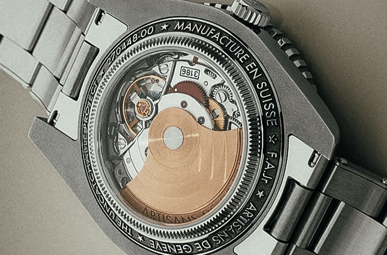 ▲手錶採用透明底蓋,露出經過Artisans de Genève重新修飾組裝的3186機芯。Source:Artisans de Genève