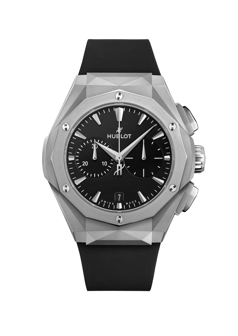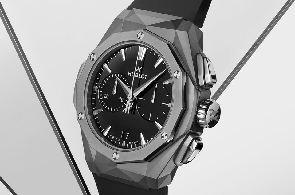 HUBLOT宇舶與法國雕塑藝術家Richard Orlinski最新攜手打造的作品為經典融合Orlinski鈦金計時碼錶,錶款外型依舊融入Orlinski強烈的個人創作風格,呈現出多角度切面與稜角分明的亮眼造型,此外本次宇舶還替手錶換上另一枚計時機芯,與先前慣常使用開面設計的經典融合Orlinski計時碼錶營造出不同的嶄新氣象。