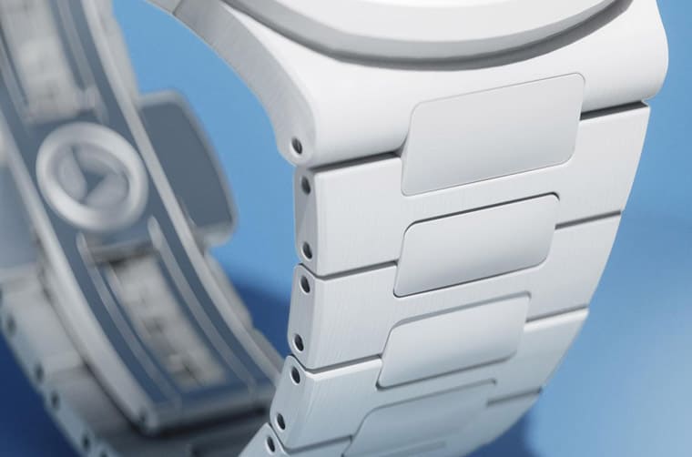 ▲錶款除了以白色陶瓷製作錶殼,連鍊帶也同樣以陶瓷製作,賦予手錶外部高強度以及抗磨耐刮性。Source:AET REMOULD