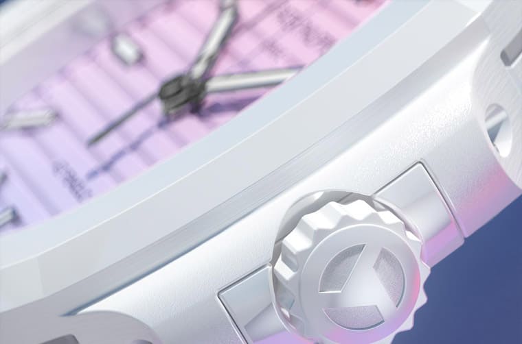這次AET REMOULD的新作不僅在製作陶瓷零件的過程又掌握到更多Know-How得以製作出陶瓷鍊帶零件,同時手錶面盤的漸層色調也展現改裝錶品牌克服工藝關卡獲得的全新技術,其能超過單色的限制,將原本獨立的兩種顏色緊密的融於一體,手錶的功能以及面盤格局雖然都沒有任何修改,但光是靈感來自大自然現象的絕美印象面盤,就足以展示出手錶的迷人之處。