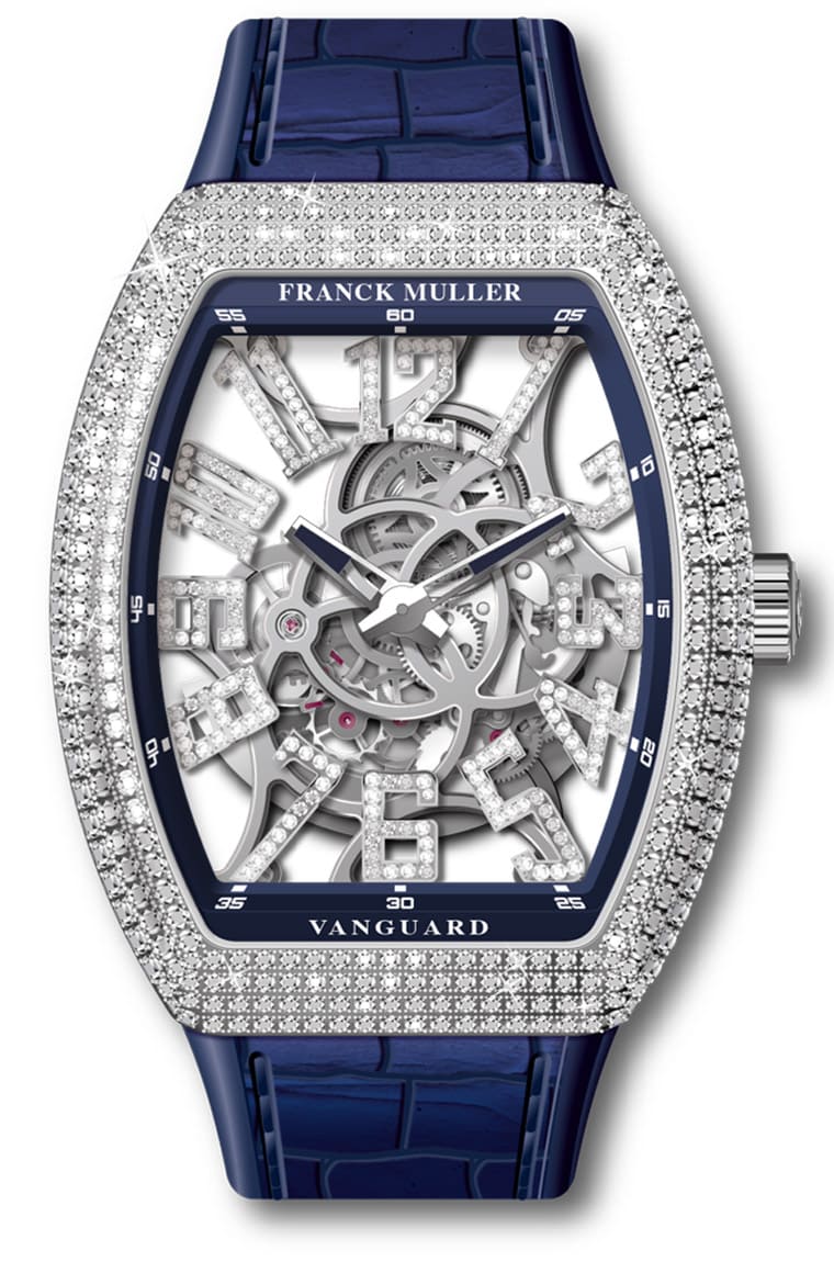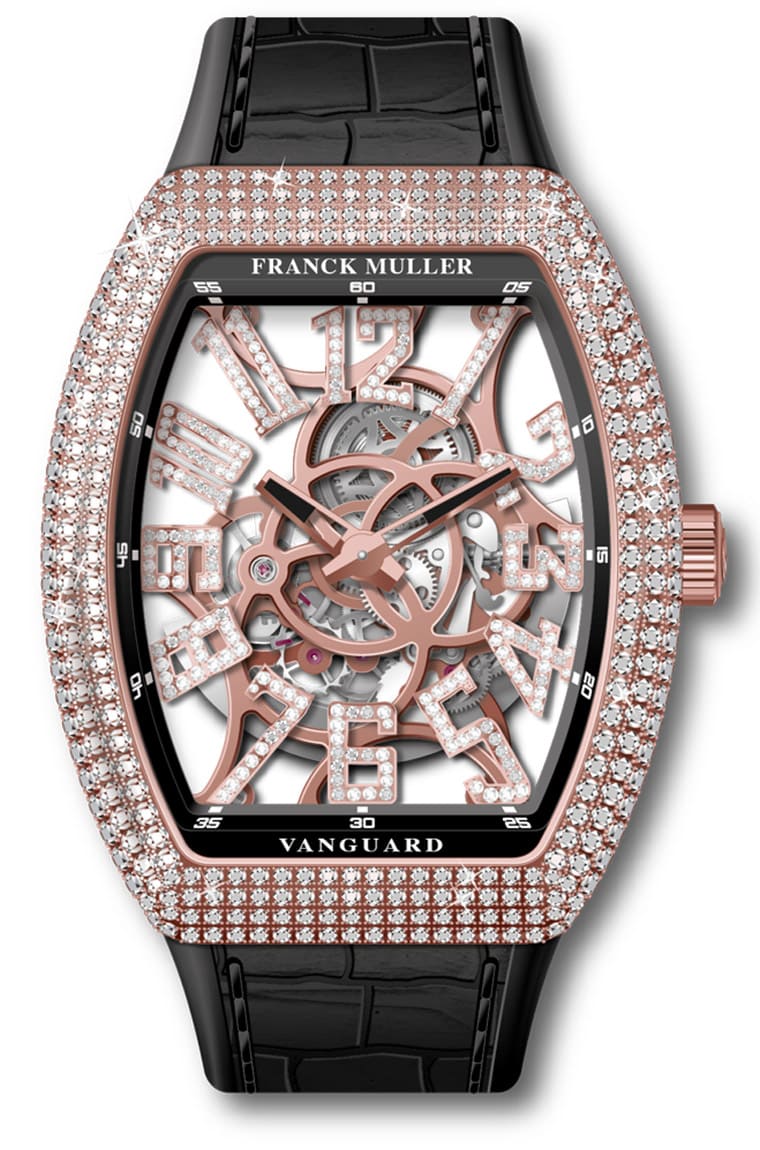 共有玫瑰金與白金兩種款式,其中白金還有鑲鑽與無鑽石可選,錶殼與鱷魚皮錶帶完美結合,塑造出流暢的外觀線條。鏤空機芯帶來通透的視覺效果之際,FRANCK MULLER也延續著Vanguard系列高辨識度的阿拉伯數字時標傳統,讓佩戴者能夠據以清楚讀時,這枚自動機芯的厚度僅4.3mm,相對相薄的厚度與錶殼的硬朗風格呈現反差,但也提供更舒適的佩戴感受。
