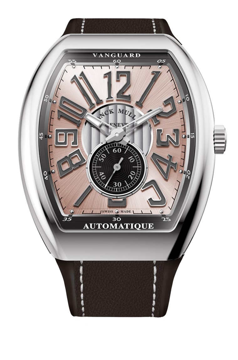 部分款式為FRANCK MULLER少見的金屬鍊帶作品,從面盤6點方向的小秒盤中突顯手錶致敬”Belle Époque”(歐洲的黃金時代)的復古主題,同時面盤中央別出心裁地使用日內瓦波紋點綴也很吸睛。Vanguard Slim Vintage面盤分別有鮭魚色、淡綠色、白銀色、天藍色和摩卡咖啡色等豐富色彩可選,而除了鍊帶之外,也有皮革錶帶款式可選。