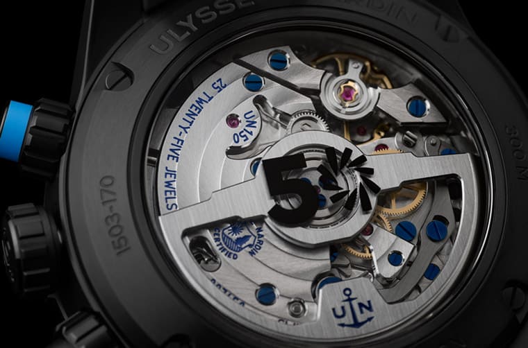 錶款擁有潛水錶等級的300米防水深度,且其還能採用透明底蓋露出手錶搭載的UN-150計時機芯,這枚機芯由318枚零件組成,底蓋正中央印有醒目的“50”數字,代表慶祝世界環球帆船賽50週年之意,機芯蘊含矽質擒縱輪、擒縱叉及擺輪游絲,有助於提升手錶的走時精準度,其動力儲存48小時則屬一般水準,只要持續佩戴手錶,就能持續替手錶補充動能,不需過於擔心動力不足的問題。